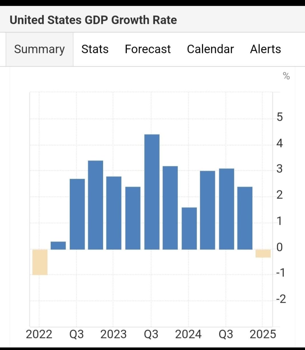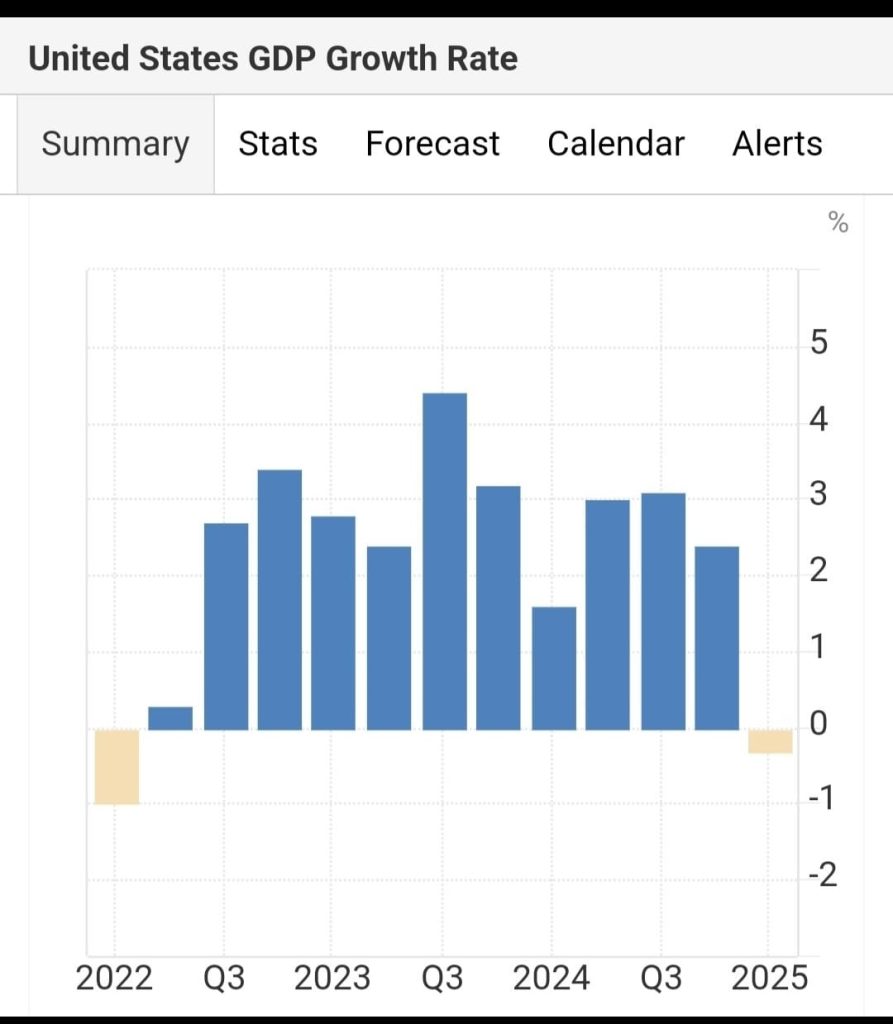 ABD ekonomisi 2025’in ilk çeyreğinde %0,3 daraldı. 2022’den beri ilk kez! ABD için resesyon riski artık ciddi bir olasılık. Stagflasyon daha da ciddi bir risk. ABD vadelileri kıpkırmızı.