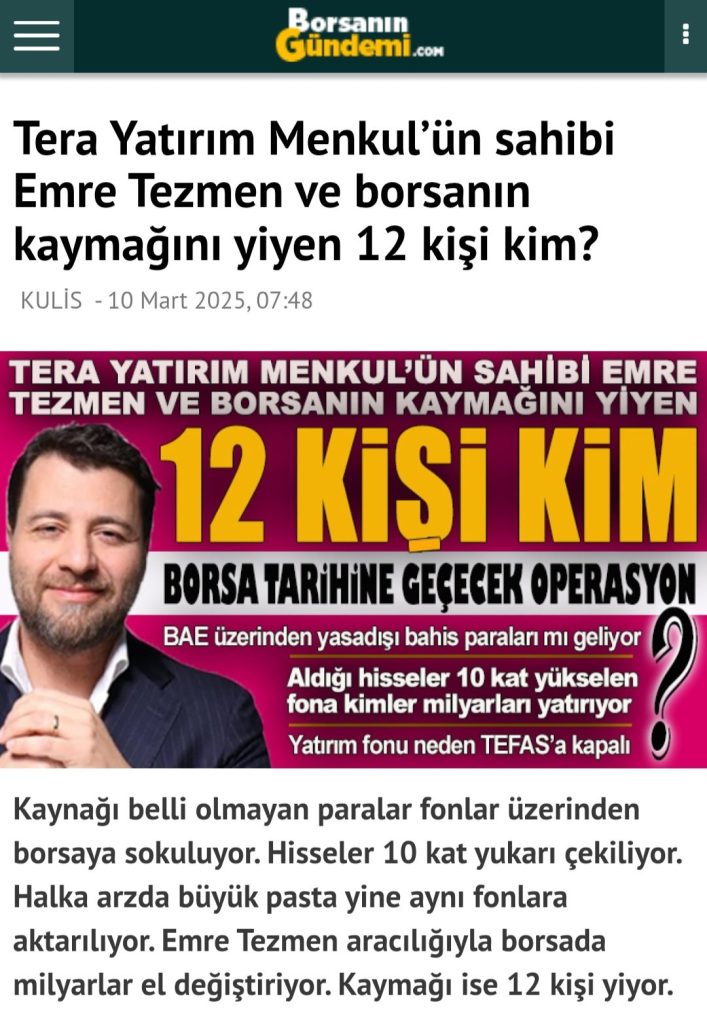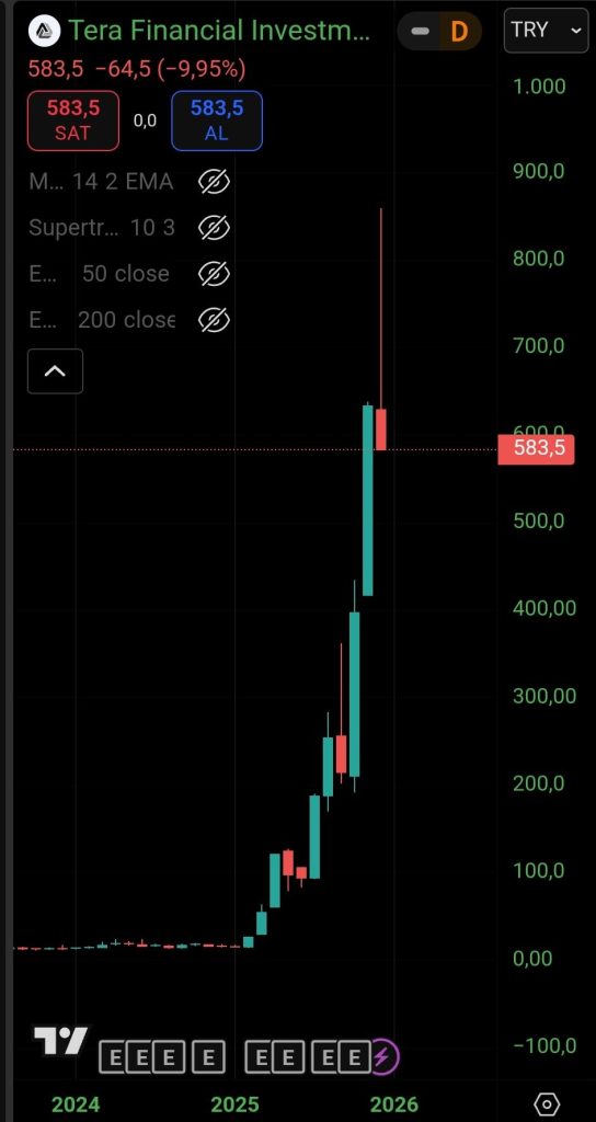 Borsa İstanbul’da 2025 yılına damga vuran fiyat hareketi, sadece getirisiyle değil, yarattığı soru işaretleriyle de gündemin merkezine oturdu. Yılın en yüksek getirili hissesi, yaklaşık %4.976’lık primle Tera Finansal Yatırım Holding oldu. Dahası, en çok kazandıran ilk üç hissenin tamamında “Tera” isminin yer alması, piyasa dışı bir tartışmayı da beraberinde getirdi.