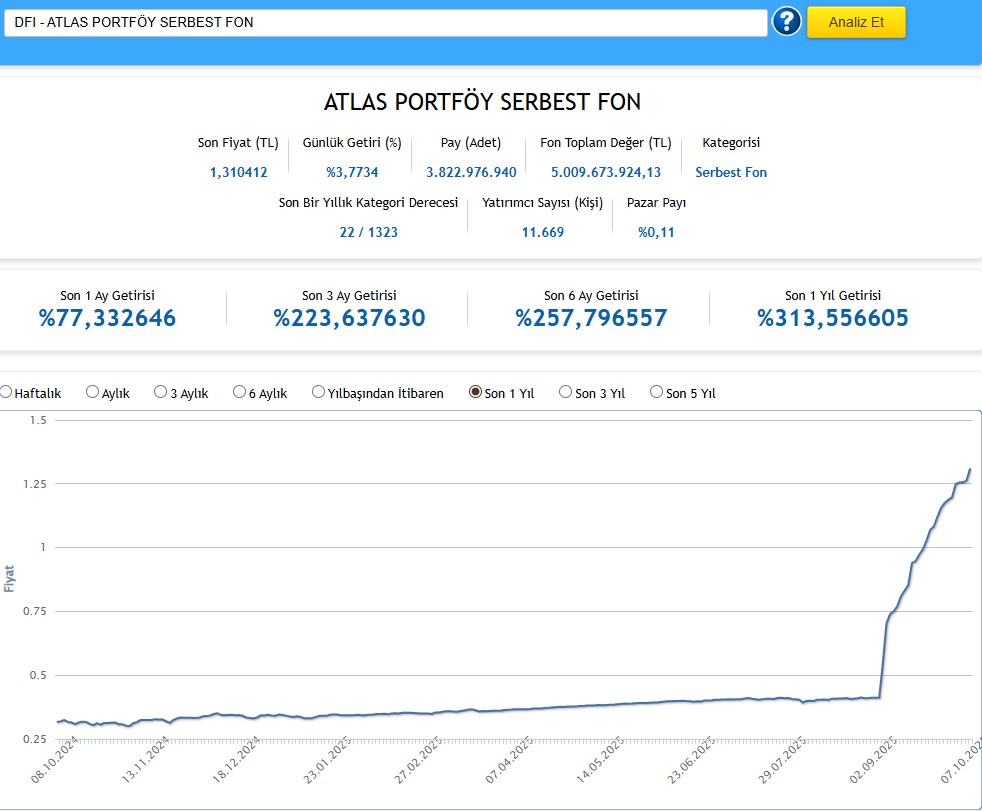 Öte yandan Atlas Portföy Serbest Fon da son 1 ayda %77, son 1 yılda ise %313 getiriyle yatırımcı ilgisini çekti. Ancak iki fonun kısa sürede yaşadığı sert yükseliş, piyasanın rasyonel fiyatlama dinamiklerinden uzaklaşabileceği yönünde endişelere yol açıyor.