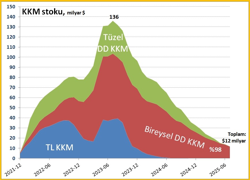 KKM, 2021 sonunda kur şoklarını bastırmak için devreye girmiş, ancak 2023 ortasında 136 milyar dolarlık bir “gölge rezerv” mekanizmasına dönüşmüştü. Bugün geldiğimiz noktada, tablo net: KKM dönemi kapanıyor, normalleşme dönemi başlıyor.