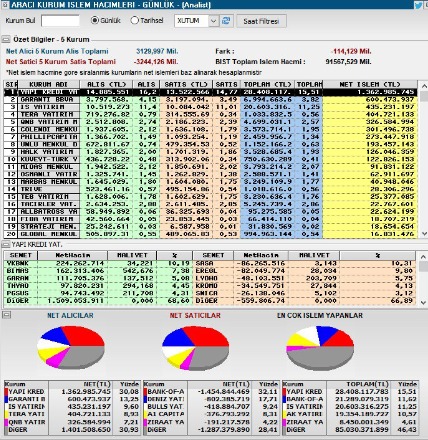 Günlük toplamda net alıcıların işlem hacmi 192,9 milyar TL, net satıcıların ise 324,4 milyar TL olarak gerçekleşti.