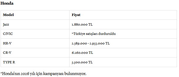 2026’ya girilirken otomotiv markaları fiyat listelerini güncelledi; birçok modelde yeni yıl zammı görülürken kampanyalarla talep korunmaya çalışılıyor