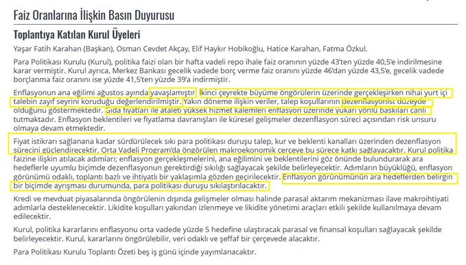 - Metin değişikliği: PPK metninden “maliye politikasının eşgüdümü” ifadesi çıkarıldı; TL’de reel değerlenme vurgusu da “kur ve beklenti kanalları” ile değiştirildi.
