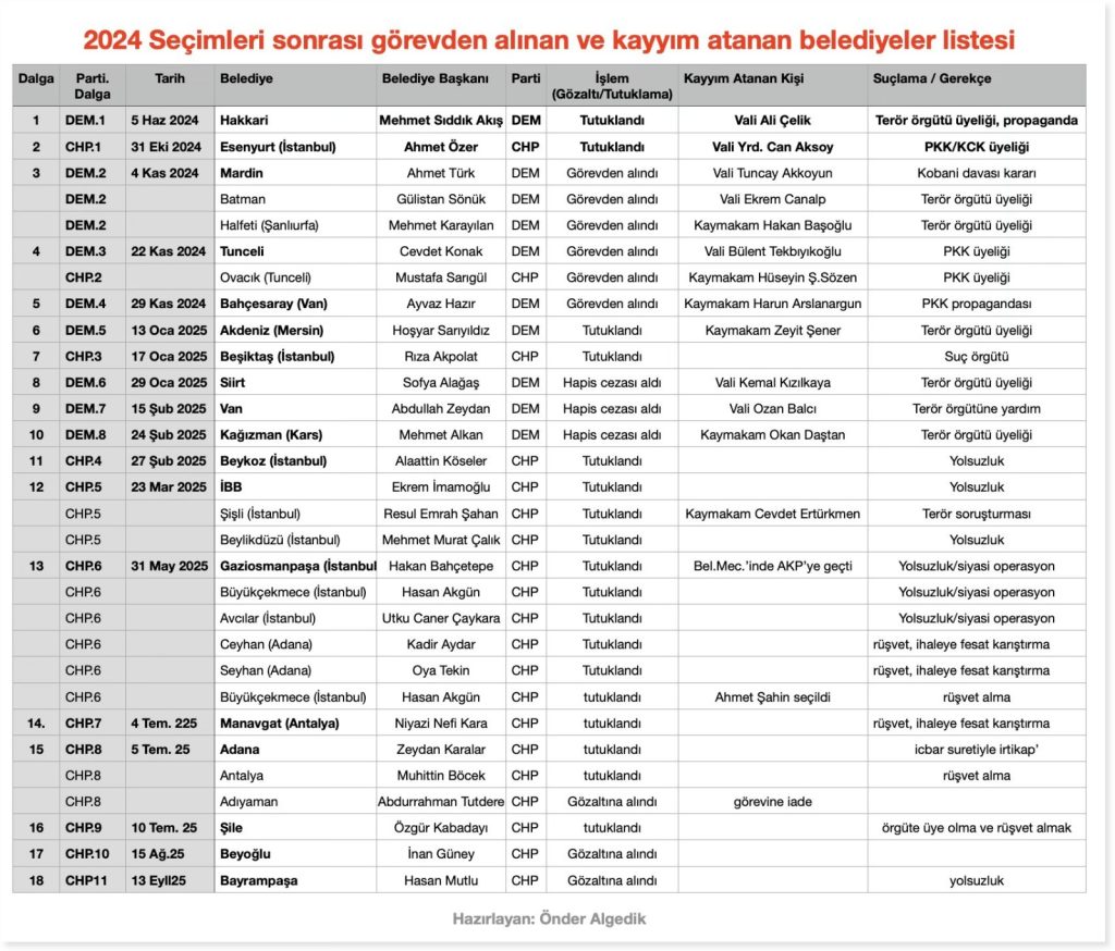 Bu kez biz sustuk sayılar konuştu: Türkiye’de Hukukun Üstünlüğü Endeksi, CDS, 2024 seçim sonrasında görevdev alınan belediyelerin listesi