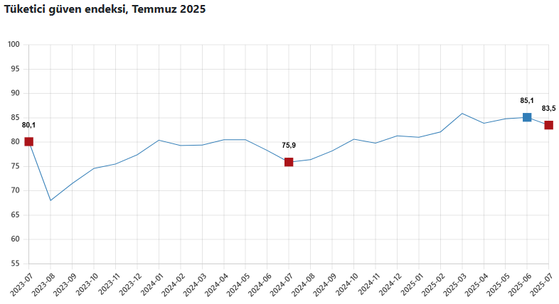 Buna göre, Haziran ayında 85,1 iken Temmuz ayında yüzde 1,8 oranında azalarak 83,5 oldu.