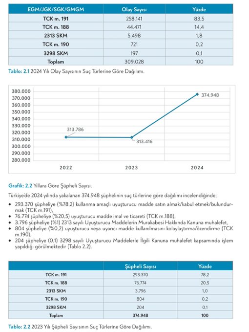 • Esrar yakalamaları düşerken sentetik uyuşturucularda sert bir sıçrama yaşanıyor; tablo yapısal bir dönüşüme işaret ediyor